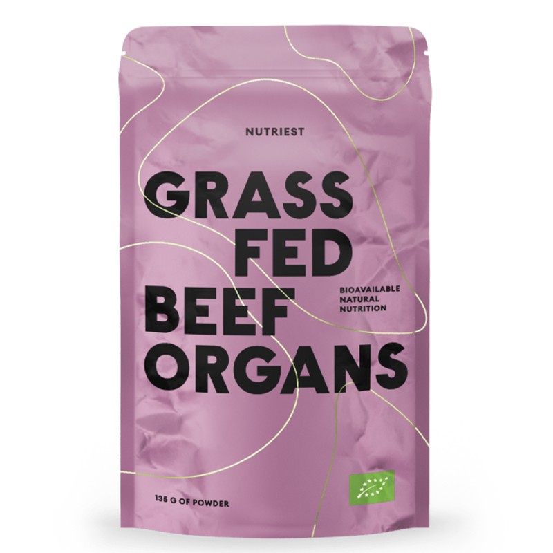 Grassfed Beef Organs е богат комплекс, концентриран източник на важни за човешкото здраве хранителни вещества, витамини, минерали и аминокиселини. Съдържа лиофилизиран органичен телешки черен дроб (50%), бъбрек (30%) i сърце (20%) от хранени само с трева животни, отглеждани в биоферми