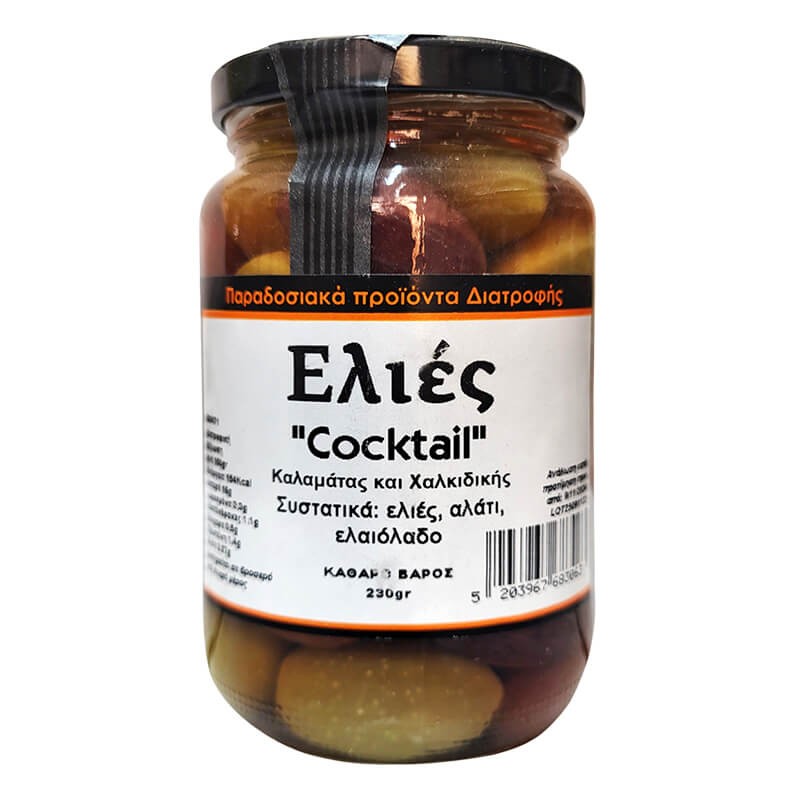Наслада от вкусове и аромати, истинско удоволствие за сетивата, събрано в пъстроцветно богатство – това е „Коктейл“ маслини сорт „Каламата“ и от района на Халкидики