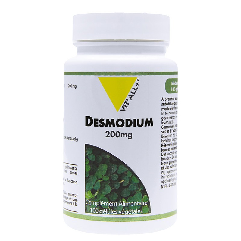 Стандартизираният екстракт Desmodium на френската компания VIT’ALL+® с произход Кот д‘Ивоар гарантира оптимална чистота, стабилност на дозировката и концентрация на активните съставки на десмодиум, 4 пъти по-висока от тази на растителния прах. Всяка капсула е еквивалентна на 800 мг. сухо растение.
