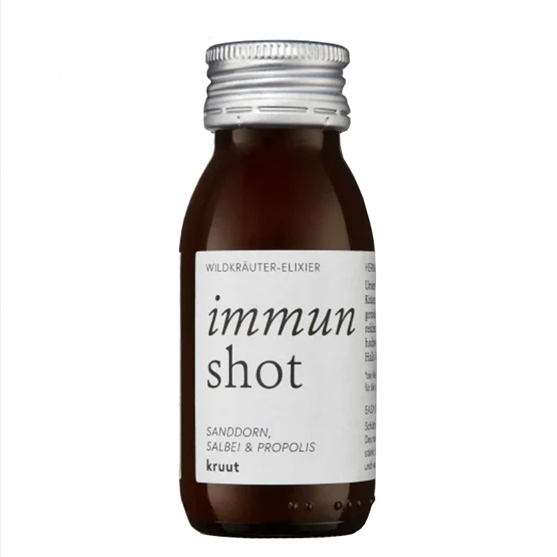 Оксимел за имунитет Immun Shot Kruut е билков шот със свеж, плодов вкус, базиран на комбинация от морски зърнастец, ацерола, прополис и билков микс с мед. Формулата осигурява богата доза витамин C и други полезни вещества, които допринасят за подсилване на имунната система, подобряване на състоянието при първи признаци на настинка и възстановяване на организма след напрегнат ден.