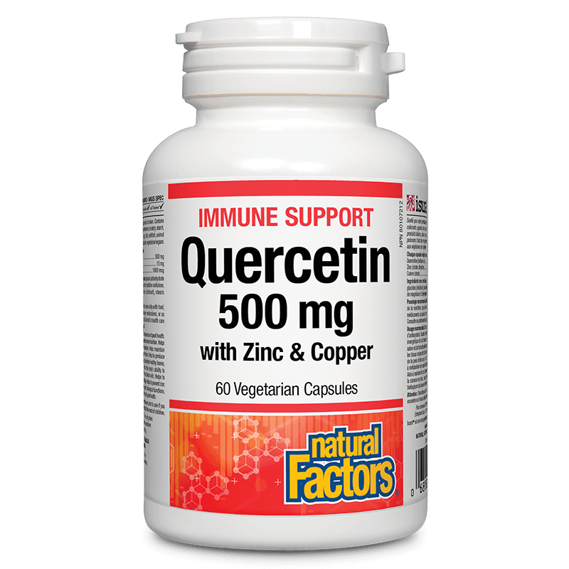 Натуралната формула на Natural Factors съдържа кверцетин, цинк и мед – естествени съставки, чието комбинирано действие подпомага антиоксидантните защити на организма, имунитета и здравето на кожата, косата и ноктите.