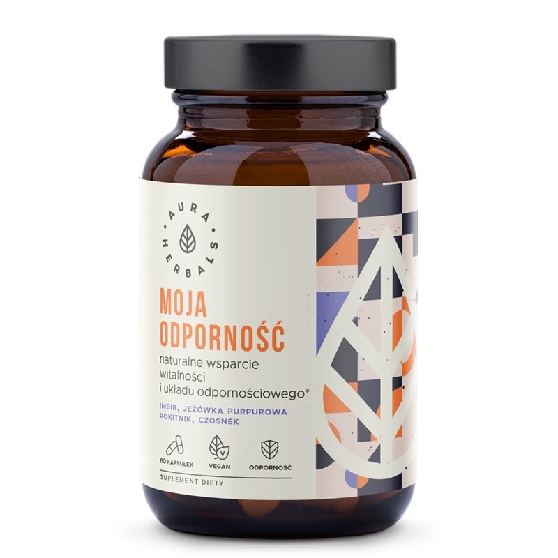 Имунитет на полската компания Aura Herbals е 100% билкова хранителна добавка, съчетаваща екстракти от растенията с най-мощно имуностимулиращо и общоукрепващо действие. Ехинацея, джинджифил, чесън и морски зърнастец са пълни с витамини и антиоксиданти, които подпомагат нормалното състояние и на дихателната система.