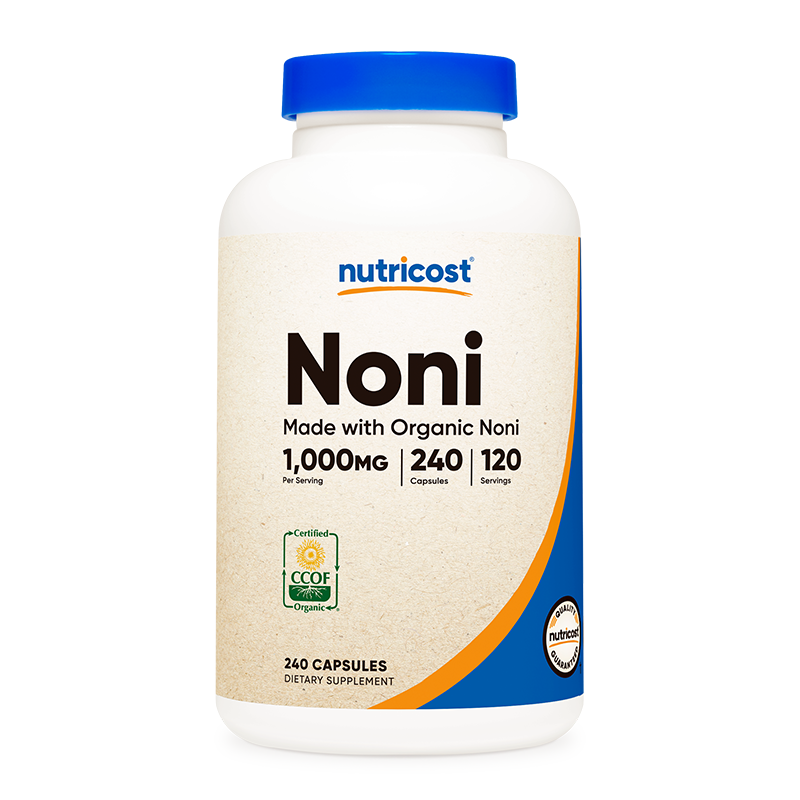 Нони 100% органичен плодов екстракт 500 mg на капсули съдейства за възстановяването на съпротивителните сили в организма, метаболизма и други важни биохимични и физиологични процеси. Продуктът е дело на изследователския екип към американския производител на хранителни добавки Nutricost. Подходящ е за вегани.