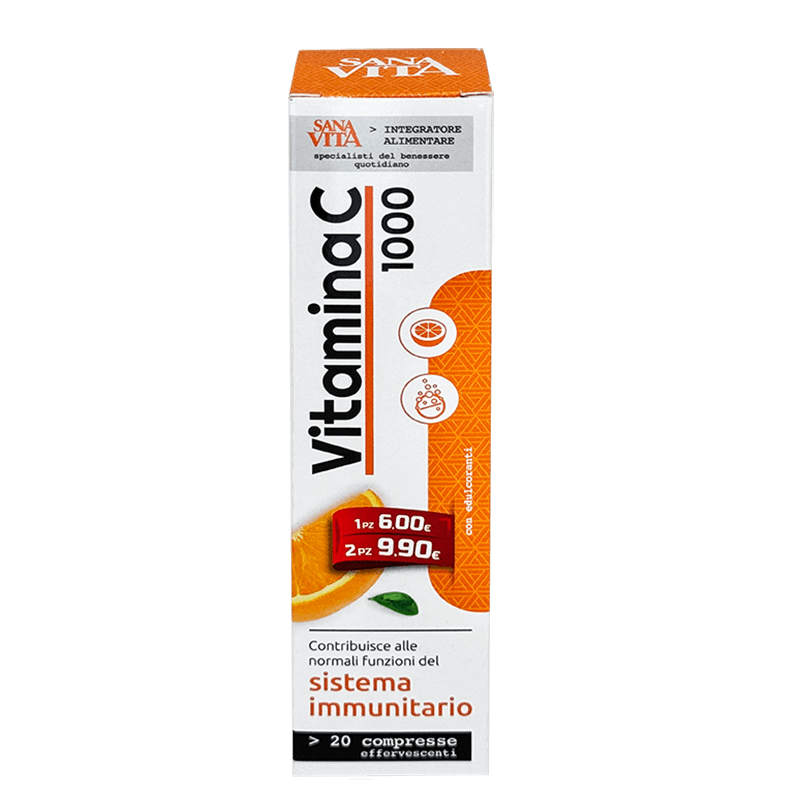 Витамин С 1000 mg, 20 ефервесцентни таблетки със сладък вкус е хранителна добавка с изцяло натурален състав. Не съдържа ГМО, лактоза, глутен и други алергени. Създадена е от италианската компания за здравословни продукти Paladin Pharma.