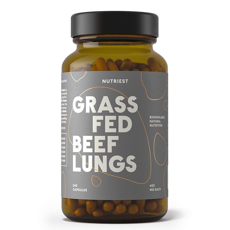 Усетете силата на органното месо (месо от вътрешности) с Grass Fed Beef Lungs – Говежди бял дроб + черен дроб на семейната естонска компания Nutriest! Доверете се на изключителното качество на 100% лиофилизирани (изсушени чрез замразяване без термична обработка) говежди вътрешности, добити от изцяло хранени с трева говеда от сертифицирани био ферми.