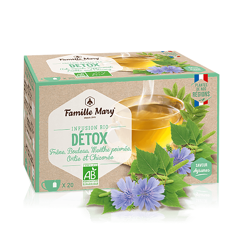 Доверете се на Infusion bio detox – чай за активен детокс. Изцяло растителен и натурален био продукт на френската компания Famille Mary®, който бързо ще ви осигури отлична форма и чисто тяло, лишено от токсини. Той не само ще ви помогне да изчистите тялото си, но и ще съдейства за борбата с излишните килограми – след приема му тялото е изчистено, органите и системите му работят оптимално и метаболизмът се нормализира. В тази връзка е важно да знаем, че пълноценната работа на черния дроб е особено важна, тъй като той отговаря не само за прочистването на организма от вредни вещества, но и за преработката, съхраняването и контрола на различни протеини и жизненоважни хранителни вещества. Когато заради прекомерно натоварване черният дроб не е способен да преработи свръх количеството токсини, те се връщат обратно в кръвта и организмът ги складира в мастната тъкан, чиято роля е да служи като защитен буфер. Освен в мастната тъкан, токсините могат да се натрупват в ставите, лимфната течност, под формата на артериална плака, в простатата, панкреаса, дори в мозъка (невротоксини). В същото време може да се стигне и до чернодробна стеатоза – самите хепатоцити започват да складират мазнини, дробът нараства, функциите му се нарушават и това рефлектира върху всички органи и системи в тялото, теглото се покачва.