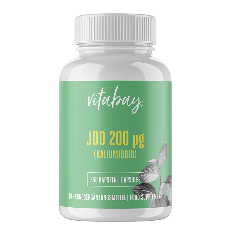 Йодна капсула от Vitabay съдържа 200 µg йод – произведен от калиев йодид. Това означава, че само една капсула може напълно да покрие дневната нужда и да допринесе за адекватно снабдяване на организма с необходимите количества йод, за здравето на щитовидната жлеза и цялостното благосъстояние.