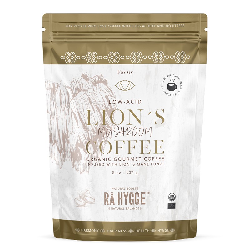 Марката Rå Hygge предлага органични продукти с витализиращо действие. Хюга е думата, с която скандинавците описват моментите на специално състояние на комфорт, уют и мир. То е свързано с простите радости на живота, като общуване с любими хора, наслаждаване на топлината и светлината на свещите и домашната атмосфера. Чашата с ароматно кафе Арабика с Лъвска грива може да е важна част от всичко това.