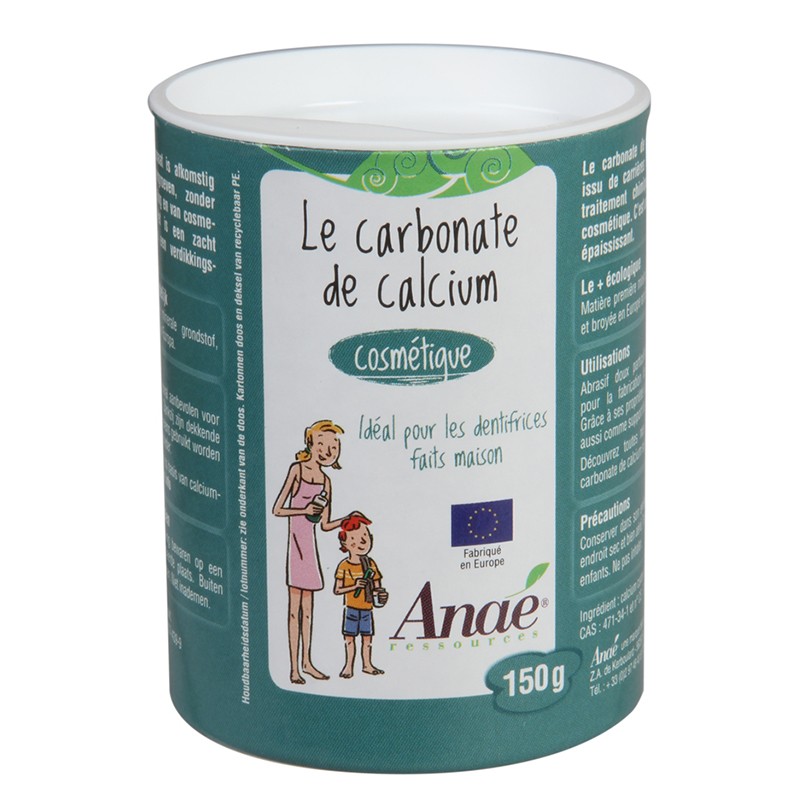 Carbonate de calcium Anae Ecodis е натурален продукт, предназначен за външна употреба. Той е представител на Anae, собствена марка на компанията Ecodis, известна с производството на артикули от естествени суровини и политика за съхраняване на европейските традиции и работните места в местни занаятчийски работилници. Съдържа висококачествен калциев карбонат от находища във Франция с изключително фина текстура, подходяща за обогатяване на домашни пасти за зъби и грижа за кожата.