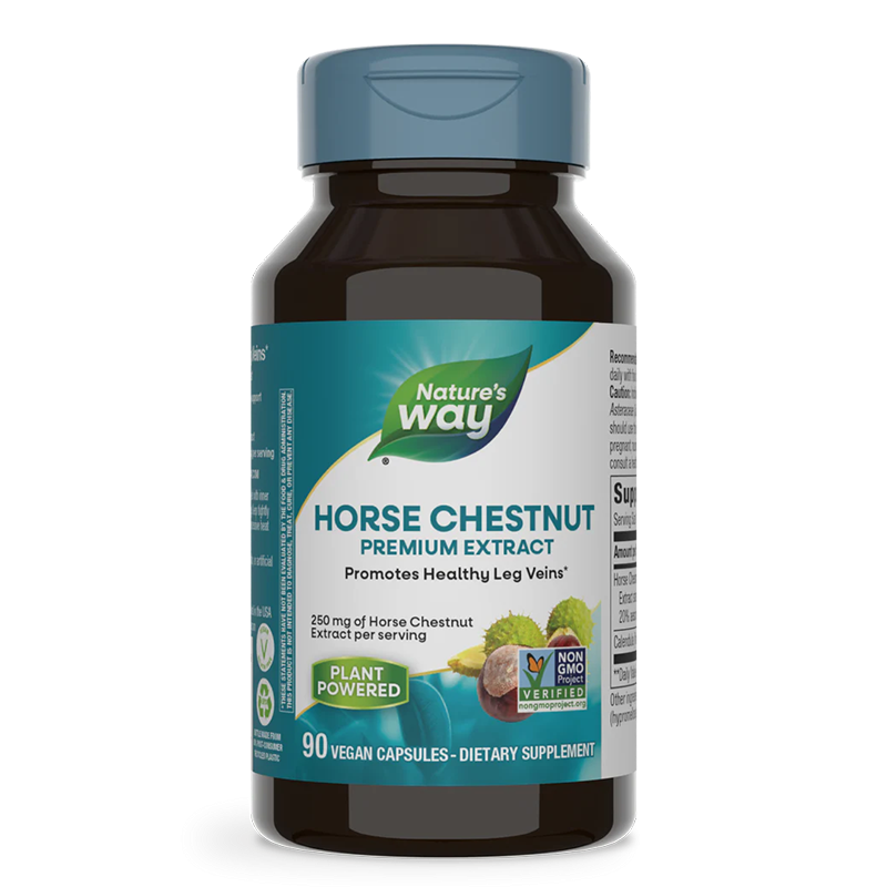Horse Chestnut е превъзходен източник на есцин (20% / 50 mg). Предлага се в опаковка, достатъчна за прием от 45 дни.