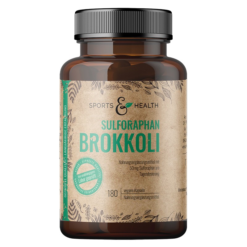 Сулфорафан Екстракт от био броколи 50 mg, 140 капсули е висококачествена хранителна добавка с универсално възстановяващо и тонизиращо цялото тяло действие от немската компания Sports & Health.