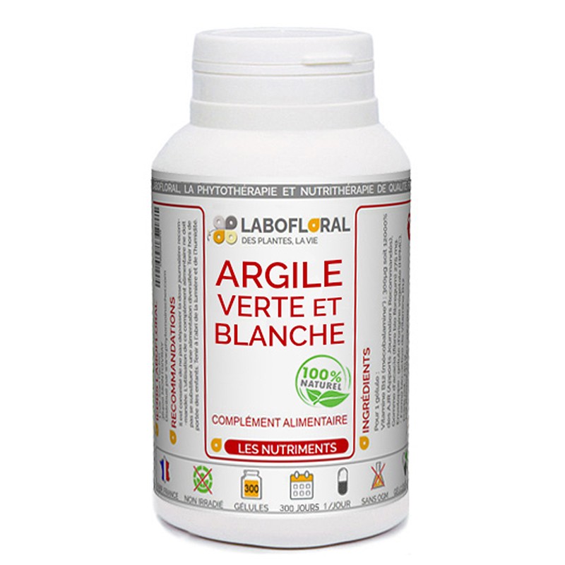 Argile Verte et Blanche, с марка Labofloral на френската компания PhytoMoinsCher е хранителна добавка с чиста зелена и бяла глина на прах, концентрирани в обвивка от 100% натурални, растителни капсули пулулан, дозирани в 420 mg.