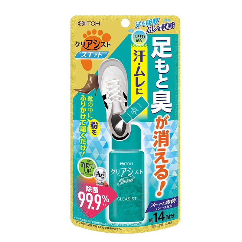 Cleasist Sweat е дезодорираща пудра за обувки, създадена специално за хора със засилено изпотяване на краката. За разлика от класическите дезодоранти, този продукт елиминира неприятните миризми още преди да се появят.
