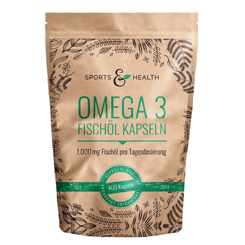 Рибеното масло Omega 3 Fischöl Sports & Health осигурява богата доза омега-3 мастни киселини, включително докозахексаенова киселина (DHA) и ейкозапентаенова киселина (EPA). DHA и EPA имат ключова роля за правилната функция на мозъка, нервната и сърдечно-съдовата система. Също така поддържат зрението и закрилата на кожата срещу вредните ефекти на слънчевата светлина. Съдействат за намаляване на риска от образуване на пигментни петна и влияят благоприятно при кожни проблеми като дерматити, алергии, екзема и псориазис.