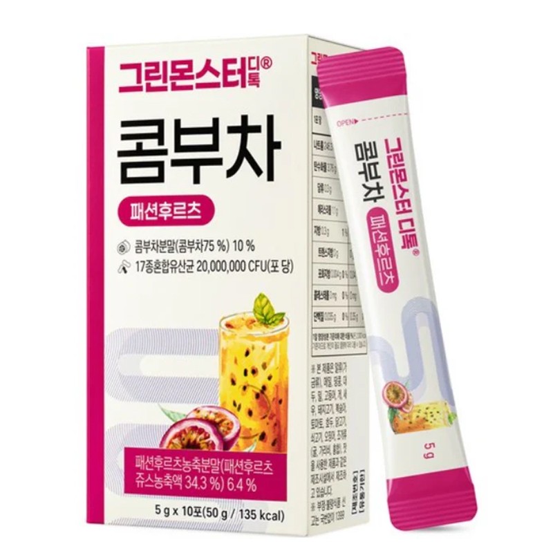 Индивидуалните сашета за приготвяне на напитката на базата на комбуча зареждат организма с пробиотици и са здравословна алтернатива на обичайните безалкохолни. Сместа с вкус на маракуя съдържа 17 вида млечнокисели бактерии, органична ферментирала комбуча от черен чай, екстракти от лимон и червено цвекло, смес от ферменти и ензимно обработена стевия. Китайците наричат комбучата еликсир на младостта, тъй като отдавна е потвърдила репутацията си на напитка за здраве и дълголетие. Всъщност това е колония от микроорганизми, която по външен вид наподобява шапка на гъба. Приготвя се при определена температура и условия за ферментация от подсладен със захар чай (зелен или черен). Green Monster предлага висококачествен готов продукт за разреждане с вода, без да е необходимо овладяване на изкуството на ферментацията в домашни условия.