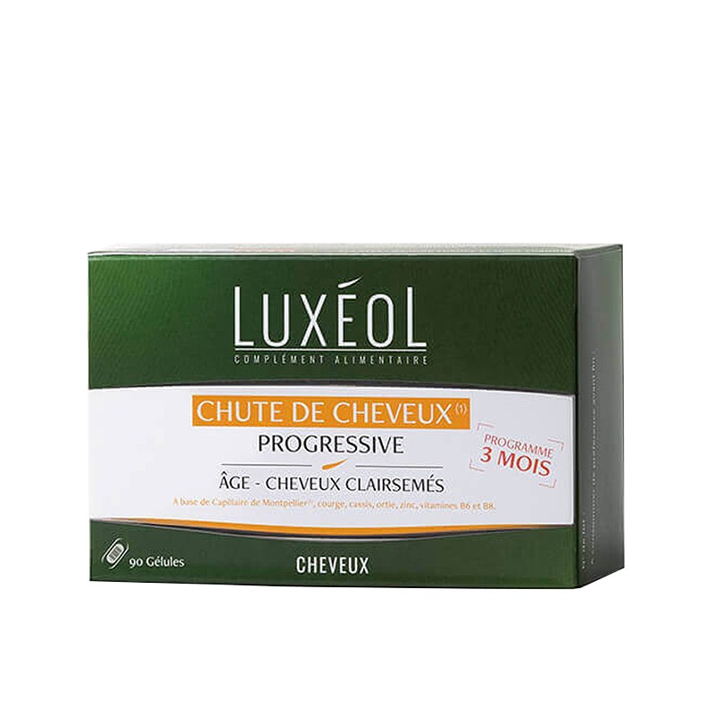 Признаците за прогресивен косопад са постепенно намаляване на броя на космите на скалпа, което може да доведе до все по-изтъняваща коса с течение на времето и с възрастта. За прогресивна се смята загубата на коса, която продължава повече от 6 месеца. Капсулите Luxéol укрепват косъма и помагат срещу изтъняването му. Те са особено ефективни, когато се приемат в комбинация в козметични продукти от програмата срещу косопад на Luxéol. Формулата допринася за регулиране на хормоналната активност и за предотвратяване на, свързаните с възрастта, промени в състоянието на скалпа и косъма. Рецептата на продукта включва растителни екстракти, витамини и микроелементи с доказано здравословно действие. Биотинът стимулира растежа на косата. Плодовият сок от касис има антиоксидантно действие, тонизира кожата на главата, има овлажняващи и възстановяващи свойства.