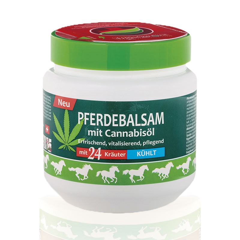 Pferdebalsam mit Cannabisöl – Конски гел балсам е охлаждащ гел-балсам с комплекс от 24 растителни екстракта и масло от конопено семе, който действа освежаващо и облекчаващо при умора, напрежение и скованост в мускулите, ставите, гърба и крайниците