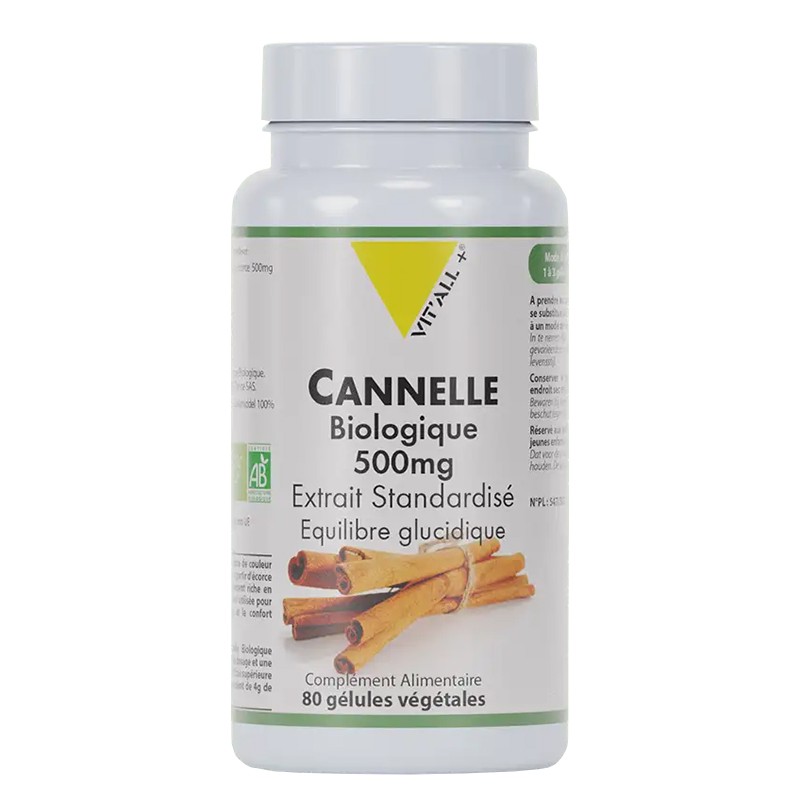 Cannelle Biologiques 500 mg от френския бранд Vit’all+ е хранителна добавка, която съдържа стандартизиран екстракт от органична цейлонска канела /Cinnamomum zeylanicum/.