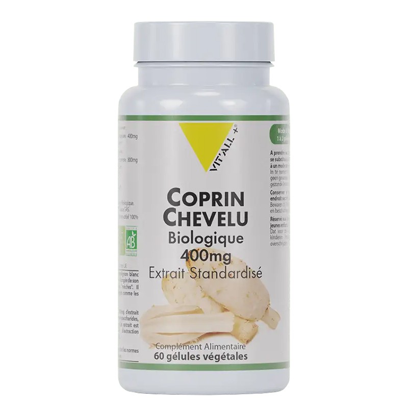Coprin Chevelu Biologique от френския бранд Vit’All+® е хранителна добавка с висококачествен органичен екстракт от плодно тяло на гъба копринка /Coprinus comatus/, съдържащ 30% полизахариди, богат на бета-глюкани