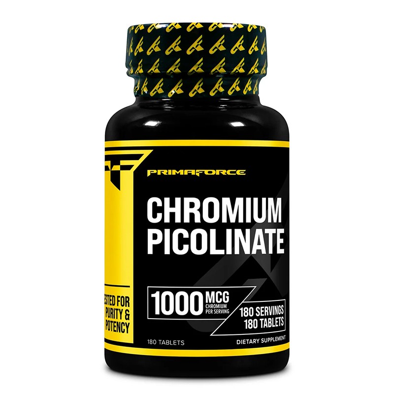 Chromium Picolinate – Хром (пиколинат) 1000 µg е хранителна добавка под формата на таблетки, която доставя на организма оптимални дози от минерала хром, допринася за поддържане на нормални нива на инсулин и контролира нивата на кръвна захар. Оказва благоприятен ефект при спадове на кръвната захар под нормата след хранене и спомага за регулиране на повишения апетит към въглехидрати и сладки неща. Подобрява метаболизма на въглехидратите и мазнините, спомага за изгарянето на телесните мазнини и допринася за изграждане на мускулна маса. Освен това намалява нивата на лошия холестерол и триглицеридите в кръвта и оказва благоприятен ефект на функциите на сърдечно-съдовата система. Подобрява здравето на очите и зрението и повлиява благоприятно при стрес и тревожност. Тази хранителна добавка не съдържа в състава си ГМО, соя и глутен.