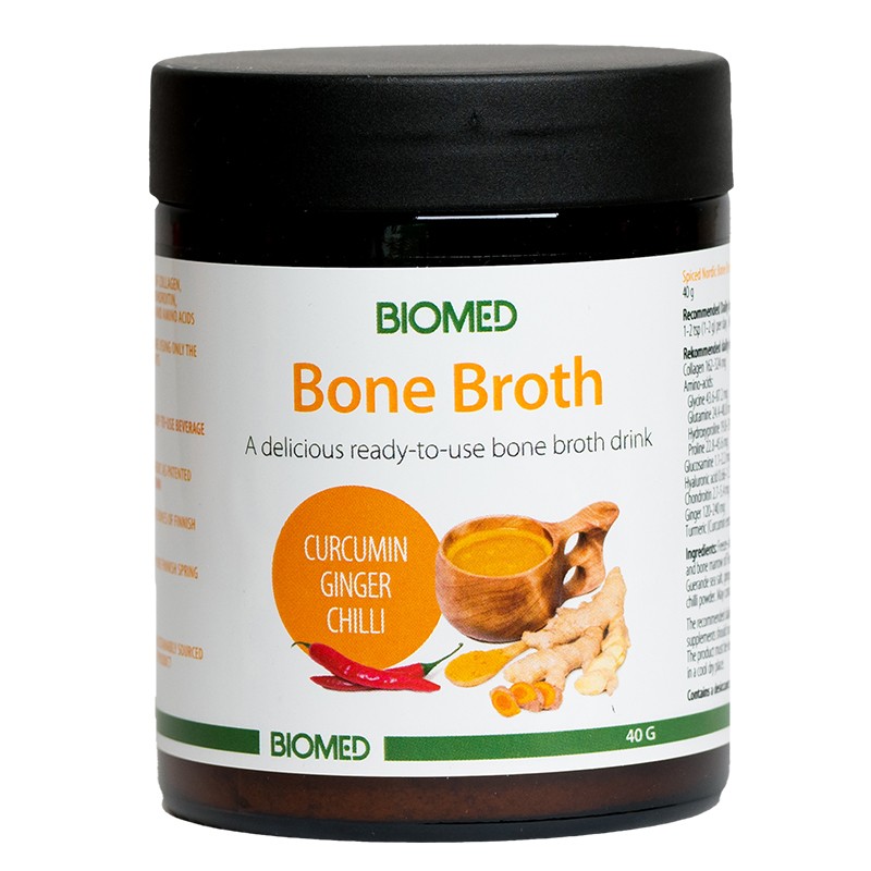100% натурален бульон на прах, получен от костите на полудиви, пасищни елени от Лапландия и приготвен в чиста изворна вода. Естествен източник на колаген, глюкозамин, хондроитин, хиалуронова киселина и аминокиселини. Лиофилизиран посредством специалната технология NatureDry, която запазва всичките му полезни съставки. Опаковката е достатъчна за приготвяне на до 7.5 л. бульон.