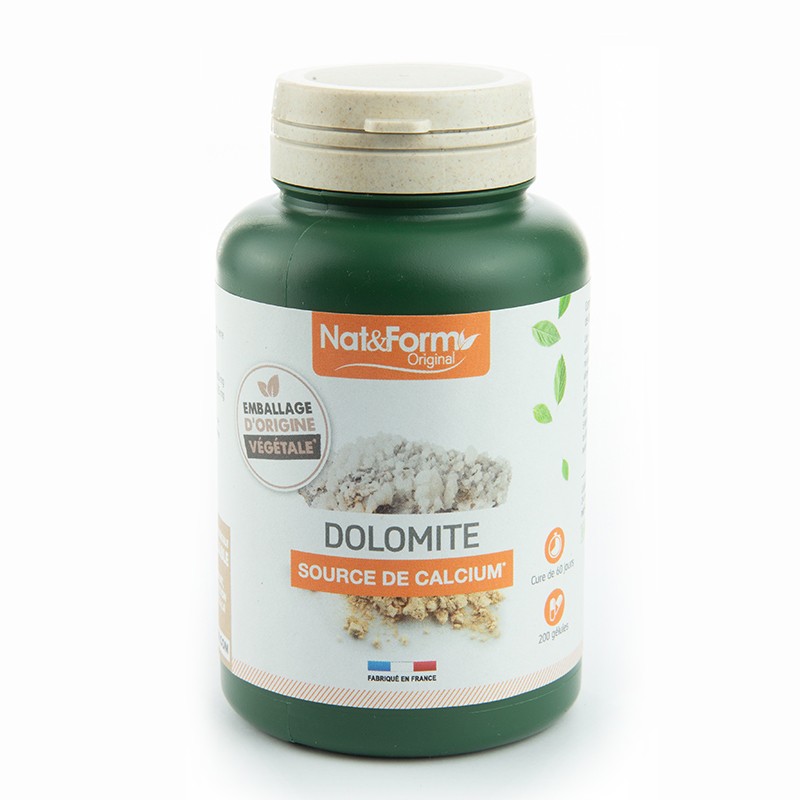 Продуктът Dolomite на Nat & Form съдържа Доломит (калциево-магнезиев карбонат), който спомага за поддържането на нормално костно здраве и намаляват умората. Доломитът прилича на варовика и може да се различи от него само след химичен анализ. Доломитът се среща толкова често в природата, колкото и варовика. Той е богат на магнезий и калциев карбонат, но съдържа и малки количества от няколко други минерали, като фосфор и калий. В продукта Dolomite е използван прах от седиментната скала със съдържанието на калций почти двойно по-голямо от количеството на магнезия. Това съотношение е идеално за тяхната асимилация от организма.