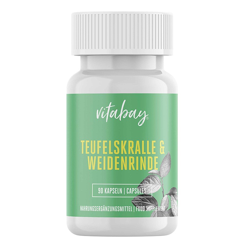 Teufelskralle & Weidenrinde Vitabay е натурална формула с прах от корен на дяволски нокът и екстракт от кора на бяла върба, която се отличава с висока бионаличност и усвояемост. Продуктът не съдържа желатин и други животински съставки и е подходящ за вегани и вегетарианци.