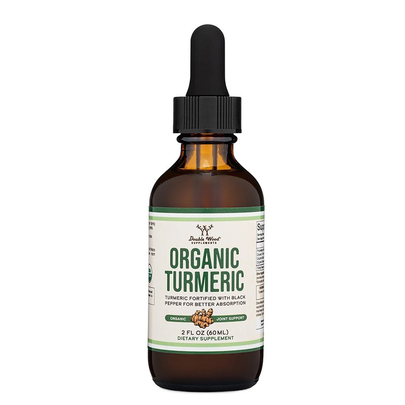 Капките с куркума на Double Wood предоставят силно усвоима органична куркума и осигуряват 1180 mg сух билков еквивалент в дневна доза