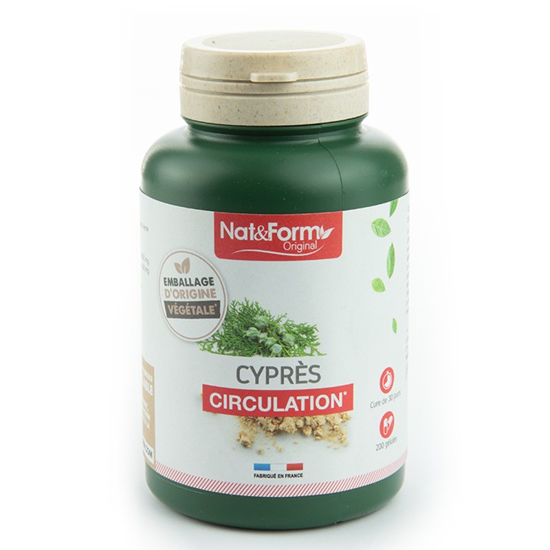 Тези кипарисови капсули на Nat&Form предлагат благоприятен ефект върху кръвообращението. Те се използват по-специално и защото помагат за намаляване на усещането за тежки и уморени крака.