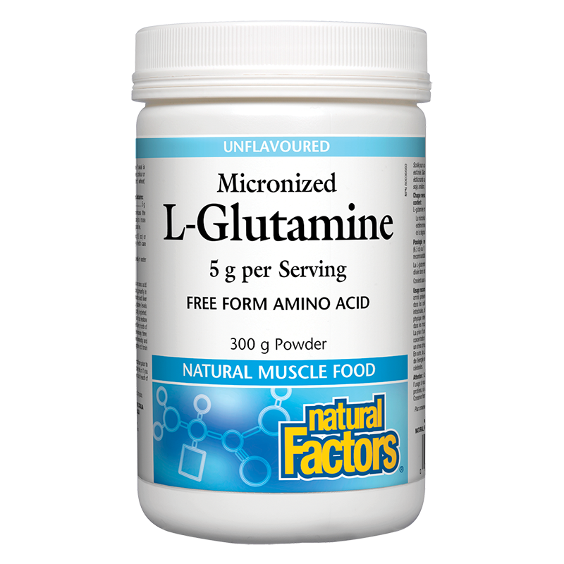 Продуктът на канадската компания Natural Factors е източник на микронизиран Л-глутамин, който се абсорбира перфектно от тялото. При технологията на микронизиране размерът на частиците е значително намален, което позволява по-лесното им разпадане и оптималното им усвояване от организма.