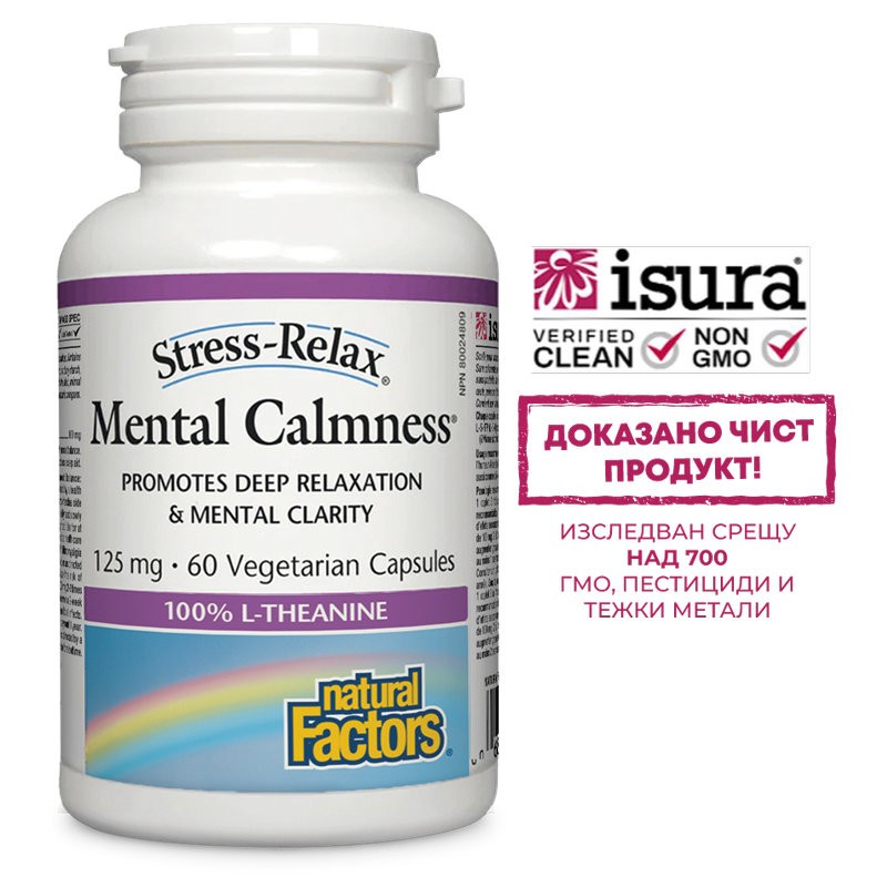 Л-Теанин на Natural Factors е висококачествен продукт, с висока степен на усвояване и бързо действие. Л-Теанин не води до пристрастяване, не предизвиква сънливост и други нежелани лекарствени реакции. Не взаимодейства с други медикаменти.