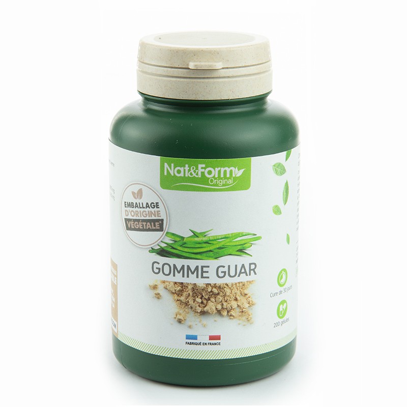 Продуктът Gomme Guar на Nat & Form е специално създаден да подпомогне диетични режими за отслабване и за понижаване нивата на лошия холестерол. Растението Гума гуар (Cyamopsis tetrapylon), което присъства във формулата като екстракт от семена, произхожда от Индия и Африка. Дървото е известно още като Индийска акация. Редовната консумация на продукти, съдържащи Гума гуар, може да помогне за намаляване на апетита, понижаване на холестерола и нивата на мазнините, за подобряване на усвояването на калция и елиминиране на токсините и бактериите от червата. Гума гуар може да има слабителен ефект. Препоръча се като добавка към диетичното меню, тъй като създава усещане за ситост. Лечебните свойства на Гума гуар се използват при запек, за профилактика на диабет, атеросклероза и затлъстяване. Гума гуар е абсолютно безопасна съставка на различни здравословни продукти, тъй като е хипоалергенна и се абсорбира от червата в оскъдни количества. Гума гуар е едно от растенията с много плюсове и почти никакви минуси, когато се използват в традиционните лечебни практики.