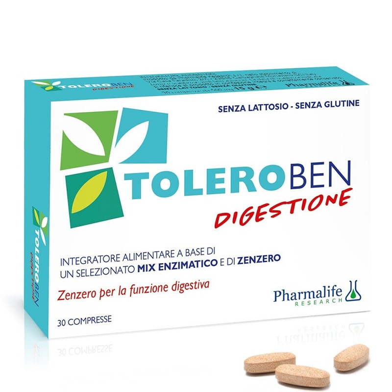 Toleroben Digestione на италианската марка Pharmalife Research е хранителна добавка под формата на таблетки, специално създадена за подпомагане на нормалните храносмилателни процеси и облекчаване на стомашния дискомфорт
