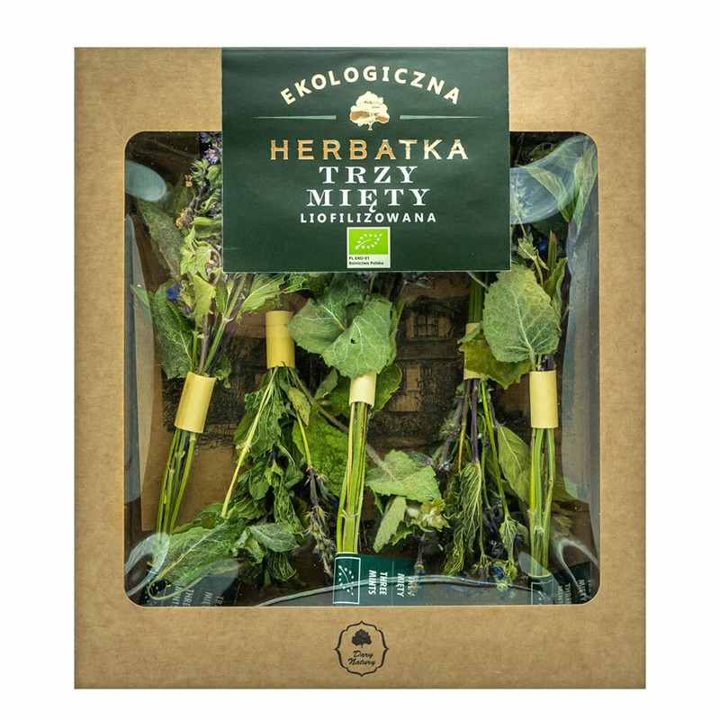 Био лиофилизираният чай Три менти на Dary Natury е освежаваща напитка, която подпомага правилното храносмилане, имунната система и помага за релаксация