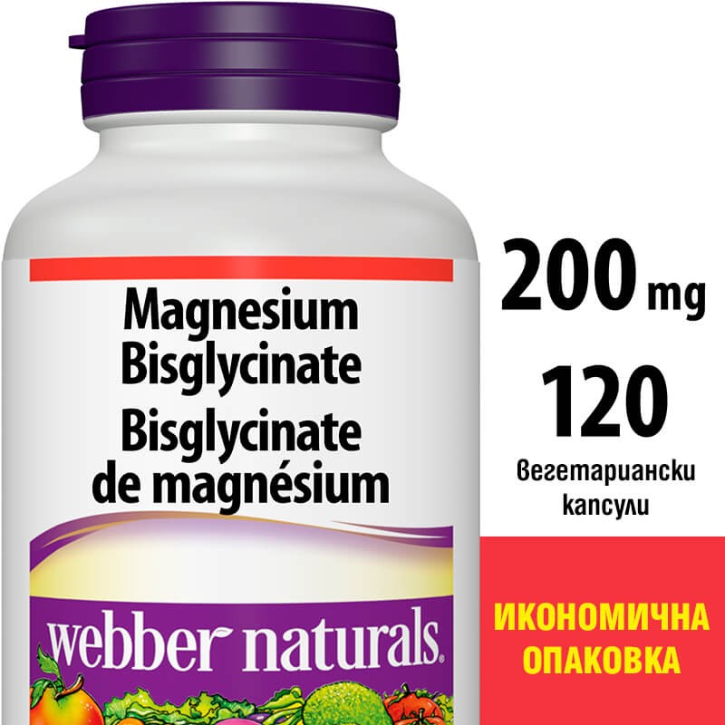 Продуктът на Webber Naturals съдържа магнезиев бисглицинат – специална форма на магнезий, нежна към стомаха и отличаваща се с висока степен на абсорбция. Особено подходяща е за хора със стомашно-чревни нарушения като затруднено храносмилане и усвояване на полезните нутриенти от диетата, нервен стомах и др. Magnesium bisglycinate се предлага в икономична опаковка, достатъчна за прием от 4 месеца!