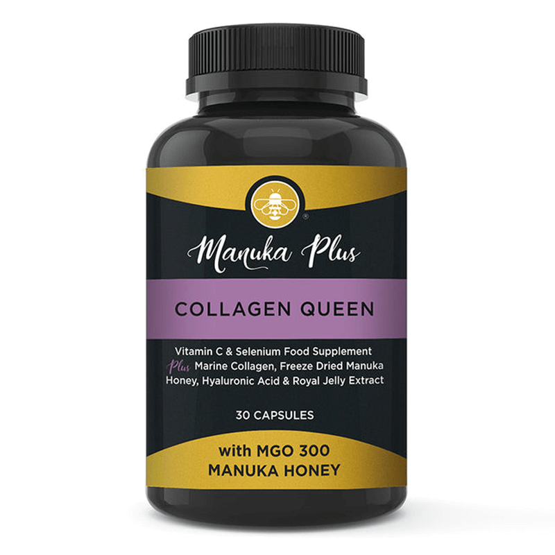 Ако в забързания делник все не ви остава време, за да се погрижите за кожата, косата и ноктите си, Manuka plus Collagen Queen (with MGO 300 Manuka Honey) е перфектното решение! Носител на сребърно отличие Pure Beauty за„най-добра новадобавка за красотаза 2019 г.“, уникалната формула на тази хранителна добавка ви дарява със здраве и красота отвътре. Комбинацията от мед от манука, колаген, селен, витамин С, хиалуронова киселина и пчелно млечице осигурява ефикасна и своевременна комплексна грижа, като компенсира дефицитите от важни вещества, от които тялото ни се нуждае.