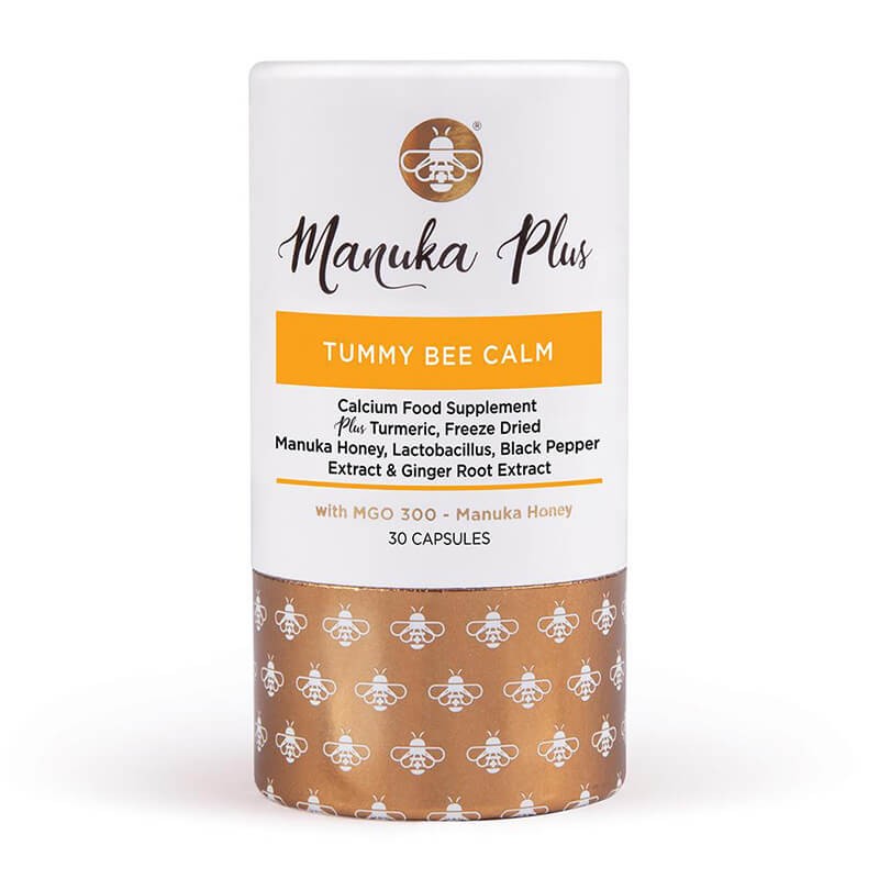 Пробиотиците действат ефективно срещу гастрит, язва, възпаления на стомаха. Полезните бактерии улесняват работата на жлъчката и тънките черва. Помагат при остра диария, причинена от вирусни и бактериални инфекции, запек, синдрома на раздразненото дебело черво (IBS),улцерозен колит, хронични заболявания като болестта на Крон и др. Manuka Plus Tummy Bee Calm съдържа калций, който допринася за нормалната функция на храносмилателните ензими. Спомага за по – лесно, бързо и пълноценно усвояване на храната, минерали като желязо и витамините – особено В12 и К.