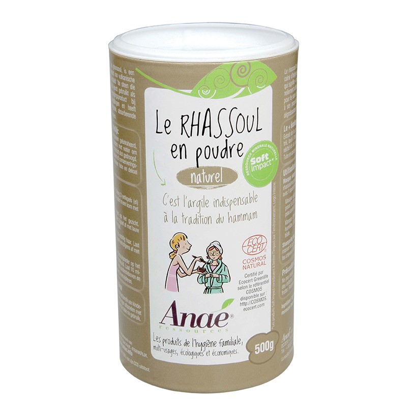 Rhassoul en poudre Naturel Anae Ecodis е 100% естествена вулканична глина расул (Moroccan lava clay), без съдържание на консерванти. Тя е част от гамата на Anae, която включва многофункционални, сертифицирани от Cosmos продукти от естествени минерали и растителни съставки, изцяло произведени от френско, биологично земеделие. Anae е собствена марка на компанията Ecodis, чиято политика е насочена към здравословния начин на живот и съхраняване на европейските традиции и работните места в занаятчийските работилници.