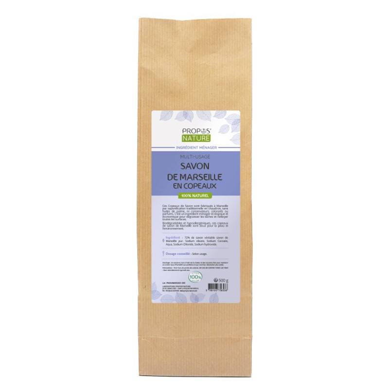 Ефективно премахва различни по вид петна от тъканите и е подходящ е за пране на бельо и деликатни тъкани. Този марсилски сапун на люспи е хипоалергенен, допринася за предотвратяване на кожни раздразнения и алергии и може да се използва дори за пране на детски бебешки дрехи. Освен за пране, той е подходящ и за миене и къпане, тъй като притежава антисептични свойства. Марсилският сапун е изключително деликатен към чувствителната кожа и идеален и за нежно почистване на бебешкото тяло без риск от дразнене, тъй като допринася за поддържане на нормалното ниво на рН. Отличен заместител е на традиционните препарати за миене на съдове, ефективно отстранява мазнината и замърсяванията и може да се използва като крем за бръснене, душ гел и дори шампоан.