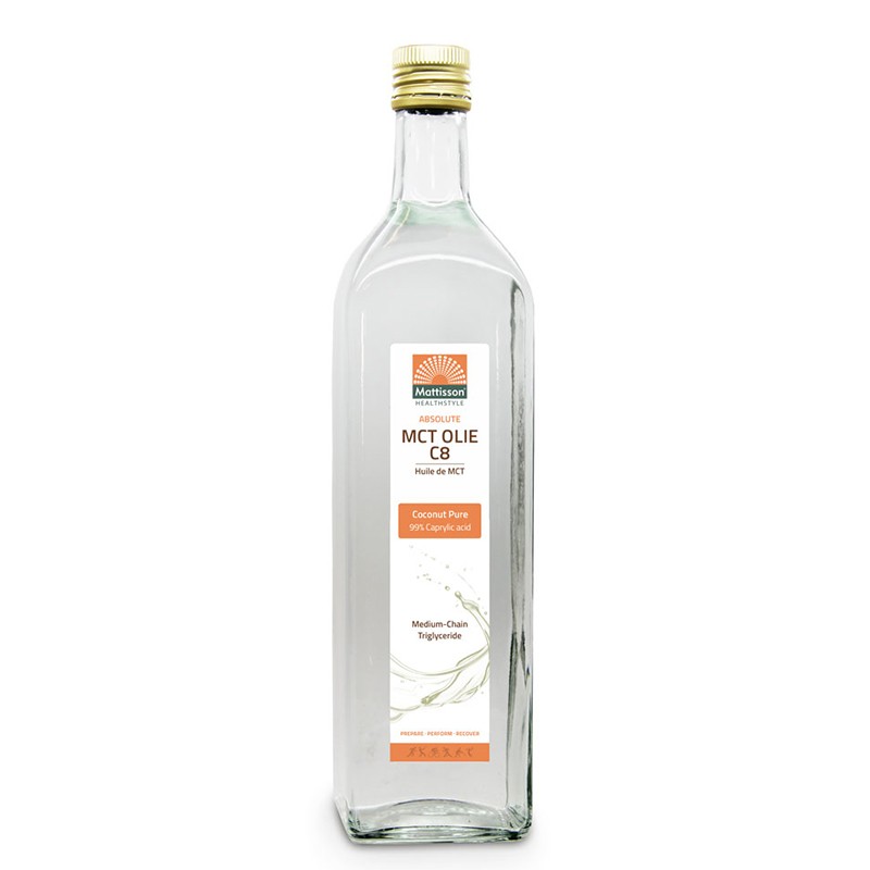 Органичното C8 MCT масло на Mattisson е направено от 100% органично кокосово масло и съдържа 99% каприлова киселина и 1% капринова киселина