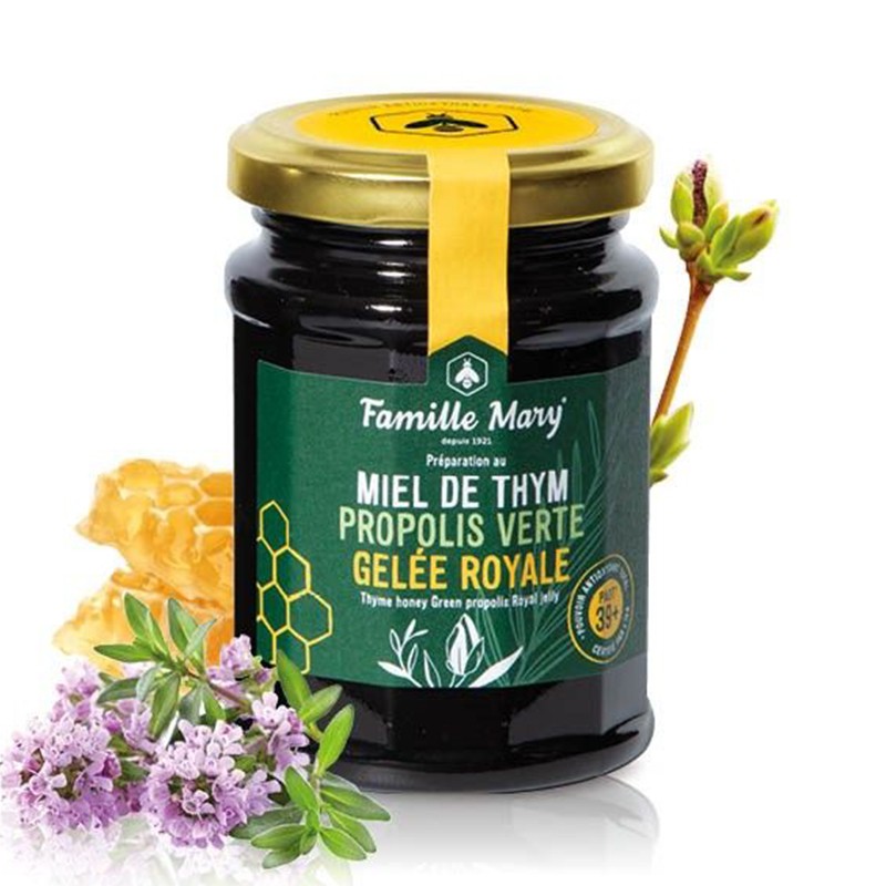 Мед от мащерка + пчелно млечице и стандартизиран зелен прополис PAOT® 39+ – Имунитет и гърло, 200 g
