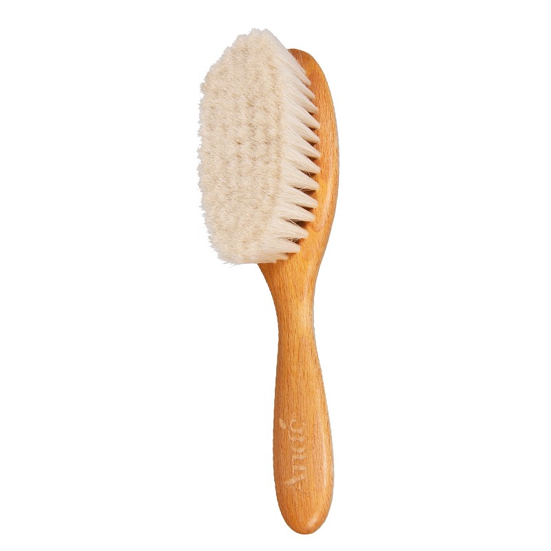 - Козите влакна се плъзгат по скалпа на бебето, разпределяйки перфектно естествените масла. По този начин поддържат здравето на косата и намаляват или напълно предотвратяват образуването на себорейни люспи;