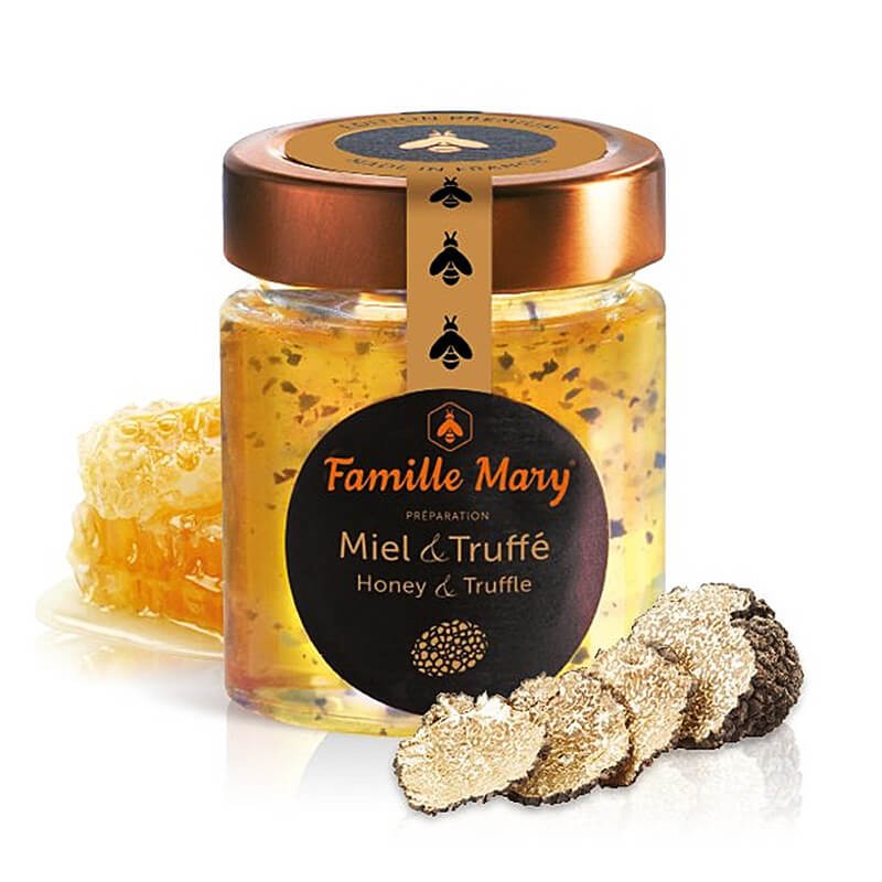 Трюфели и първокласен чист акациев мед… Това е тайната на Miel & Truffes – един от най-екстравагантните и луксозни пчелни продукти на френската медоносна къща Famille Mary®. Той е находка за ценители, а подобна комбинация между изключителния аромат на деликатесния „крал на гъбите“ със сладостта на меда не може да остави равнодушен нито един истински гурман и любител на изисканата храна, като в същото време ще възбуди любопитството на търсачите на нови кулинарни вкусове.