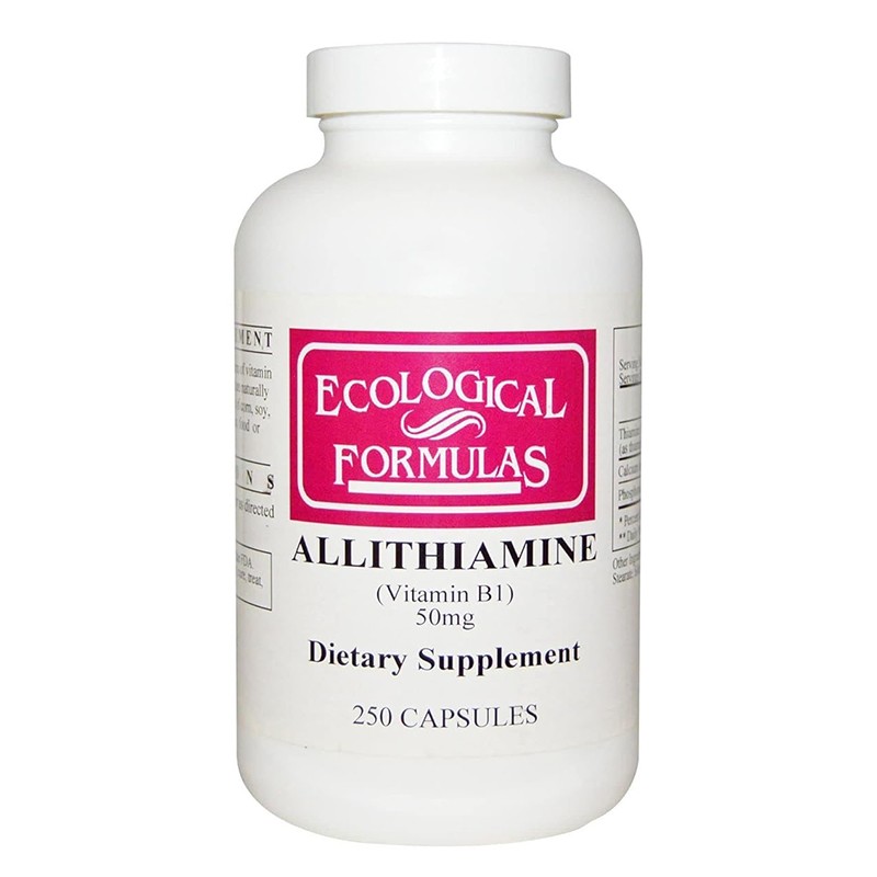 Витамин B1 е водоразтворим витамин, който се открива в животински и растителни източници. Водоразтворимите витамини се усвояват лесно и не водят до натрупване, тъй като излишните количества се изхвърлят посредством урината. Различни фактори като хранителен режим с превес на преработените храни, често се наблюдават липси. Allithiamine на Ecological Formula се базира на тиамин (TTFD-тиамин тетрахидрофурфурил дисулфид), който помага за попълване на дефицитите и допринася за нормалното функциониране на организма. Алитиаминът съдържа специална форма на витамин B1 и други хранителни кофактори, които в природата се срещат при чесъна. Формулата не включва в състава си глутен, казеин, царевица, соя, мая, пшеница, фенол или други алергени.