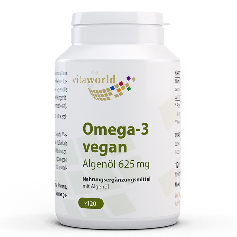 Всяка веган капсула Omega-3 vegan на немската компания Vita-World доставя 625 mg питателно масло от водорасли, включително 250 mg DHA ( докозахексаенова киселина). Основните мазнини от водораслите могат да подобрят баланса на мастните киселини в организма и да допринесат за: