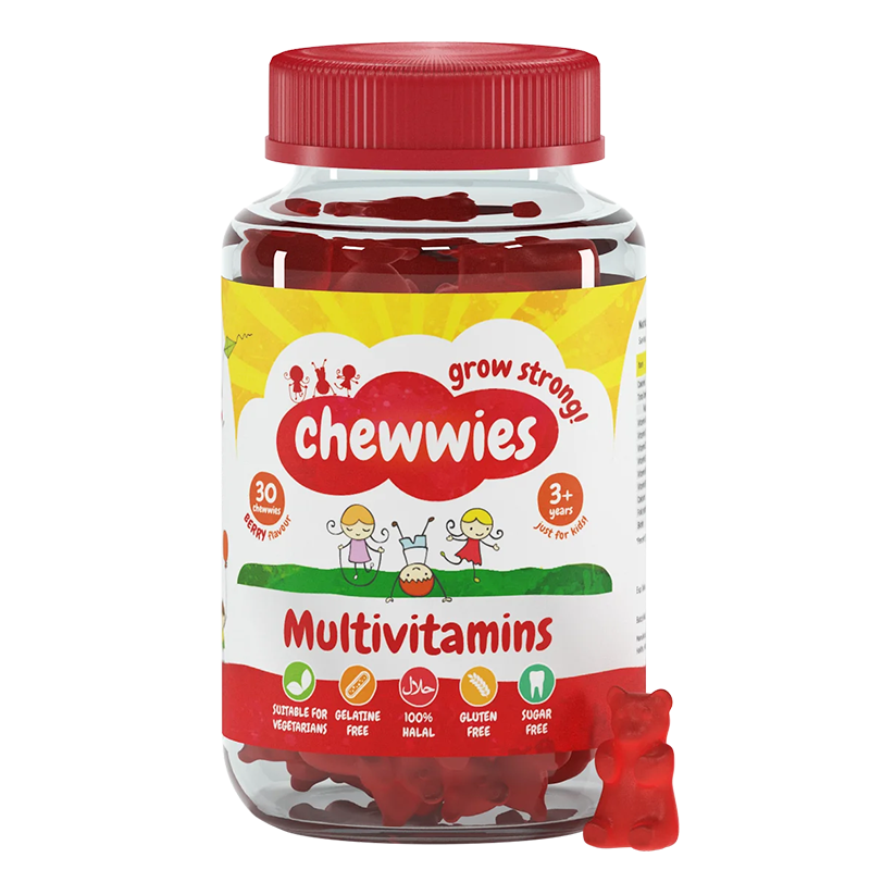 Multivitamins Chewwies е хранителна добавка, създадена специално за деца на възраст над 3 години. Всяка вкусна натурална желирана таблетка съдържа ключови хранителни вещества за поддържане на имунното, очното и костното здраве.