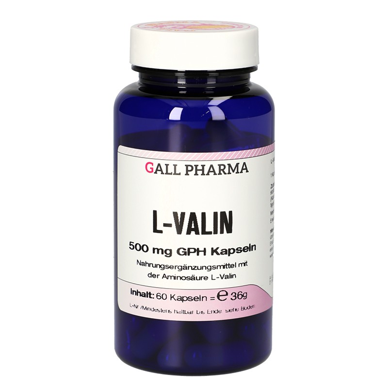 L-валинът е незаменима аминокиселина със стимулиращ ефект. Той е една от трите основни аминокиселини с разклонена верига. Дължи името си на обикновената валериана. Благодарение на L-валина се осъществява биосинтез на витамин B5 (известен още като пантотенова киселина), който помага за преодоляване на ефектите от стрес или хронична умора и потиска производството на кортизол. Другата му важна характеристика е, че той влияе върху растежа на всички тъкани, тъй като е един от основните компоненти на този процес. Необходим е за мускулния метаболизъм, за възстановяването на увредените тъкани и за поддържане на нормален азотен метаболизъм в тялото. В качеството си на разклонена аминокиселина, може да се използва от мускулите като източник на енергия. Най-често се препоръчва за коригиране на тежки дефицити на аминокиселини в резултат на пристрастяване към наркотици. Съдържа се в зърнени храни, месо, гъби, млечни продукти, фъстъци, соев протеин. Добавянето на L-валин трябва да бъде балансирано с другите аминокиселини с разклонена верига L-левцин и L-изолевцин.
