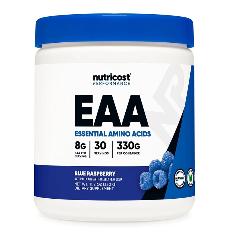 Nutricost EAA на прах е оптимална комбинация от 9 незаменими аминокиселини и доставя 11 грама от тях в дневна доза. Опаковката съдържа 30 порции с аромат на синя малина.