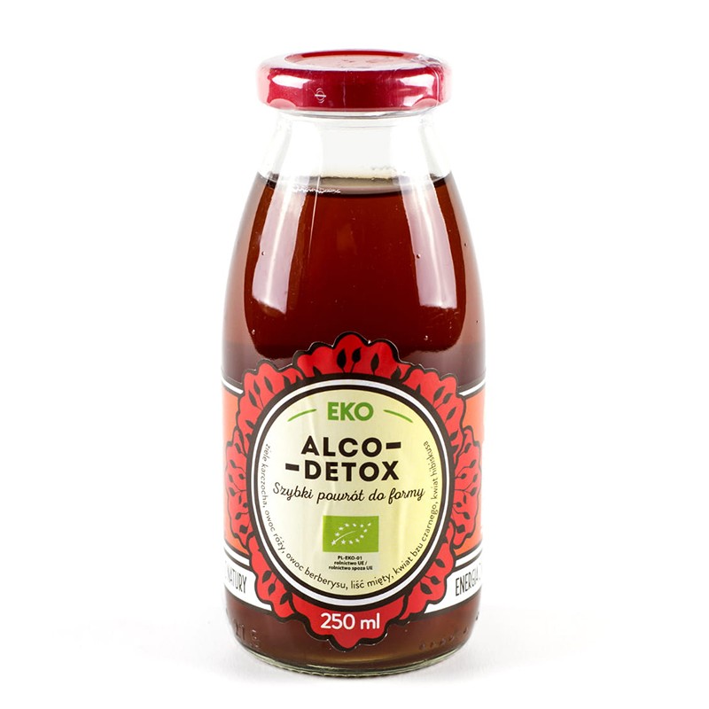 Прочистваща напитка за алкохолен детокс 250 ml бързо ще възстанови цялото ви тяло и съзнание след употреба на спортни напитки. Тя притежава не само високоефективен комплекс от полезни съставки за елиминиране на токсините, натрупани след консумация на алкохол, но и приятен освежаващ вкус. Напитката е с изцяло екологично чист състав и запомнящ се плодово ухание, примесен със запомнящ се аромат на мед . Не съдържа ГМО, добавени оцветители и консерванти.