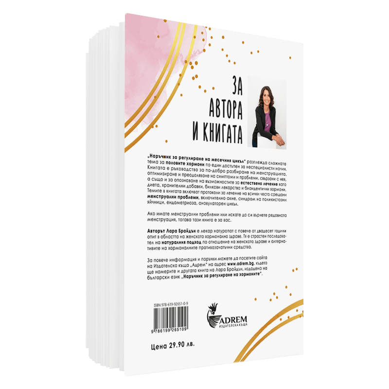 „Наръчник за Регулиране на Месечния Цикъл“ е Вашето ценно ръководство за оптимизиране и преодоляване на проблеми с Ви месечен цикъл. Книгата ще ви помогне да придобиете по-добро и задълбочено разбиране на менструацията и възможностите за натурално лечение на различни симптоми или проблеми с нея. Разделена е на две части, „Разбиране на вашия цикъл“ и „Лечение“, в които сложната тема за половите хормони се разглежда по един достъпен за неспециалисти начин. В книгата се съдържа обяснение как да използвате естествен подход на лечение, като диета, хранителни добавки, билкови лекарства и биоидентични хормони и са предоставени насоки и съвети за жени от всяка възраст. Ако имате менструация (или искате менструация), тогава тази книга е за вас.